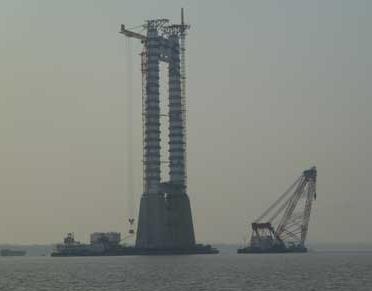 中塔施工现场远景图,合肥乐天高效物流管理有限公司是国内第一家将复合润滑涂层用于桥梁润滑系统,国内第一家将鞍座之间摩擦系数达到0.04,桥梁鞍座与座体之间润滑结构已获国家专利,已在国内多座大型跨江桥梁应用此润滑工程技术。